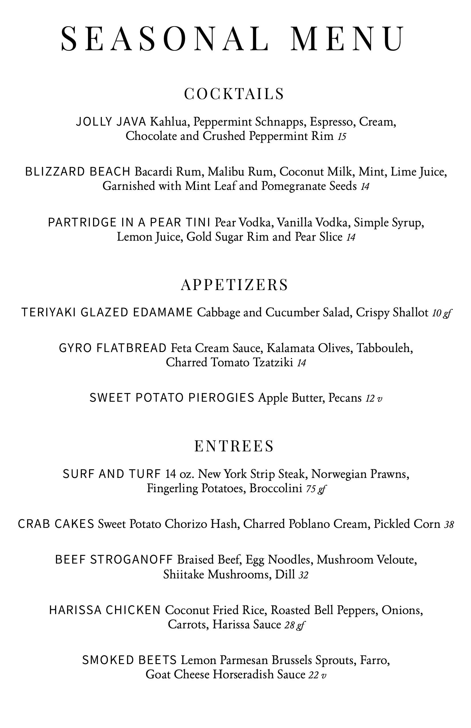 Seasonal Menu